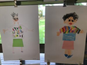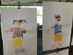 みんなで全身画を描きました。服は画用紙に絵を描いたり、好きな色のズボンやスカートを選んだりしました!