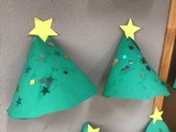 クリスマス製作では、ツリーと雪の結晶づくりに取り組みました。