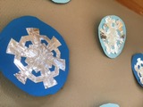 ツリーは平面の画用紙を立体的に組み立て、雪の結晶では、切り絵に挑戦しました。