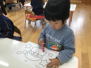 ことり組のお友達と一緒にぬりえをしたり、アンパンマン公園で仲良く遊ぶ姿が見られました。