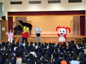 「ワレワレハ1ネンセイダ」「ハッピージャムジャム」の曲に合わせて元気いっぱいダンスをしたり、楽しいクイズに挑戦したりと笑顔溢れる時間となりました。