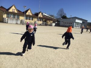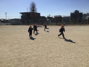 友達を捕まえられると嬉しそうな表情を見せたり、捕まって悔しそうにしたりと、様々な表情が見られ、最後まで身体を沢山動かしながら、友達との関わりを楽しむことが出来ましたね☆