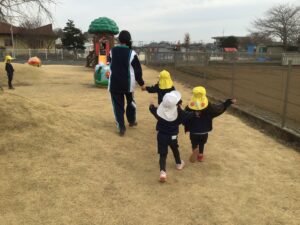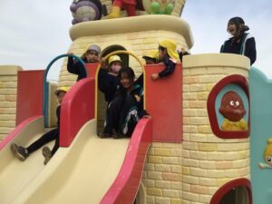 優しく声を掛けてもらったり、鬼ごっこや遊具で一緒に遊んだりする中ですっかり仲良しに♪
