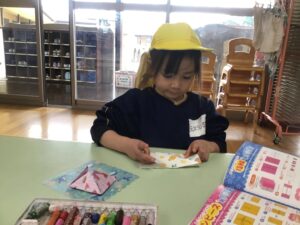 室内ゲーム(室内遊び)、折り紙、外遊びの3つから選んで好きな遊びを楽しみました。